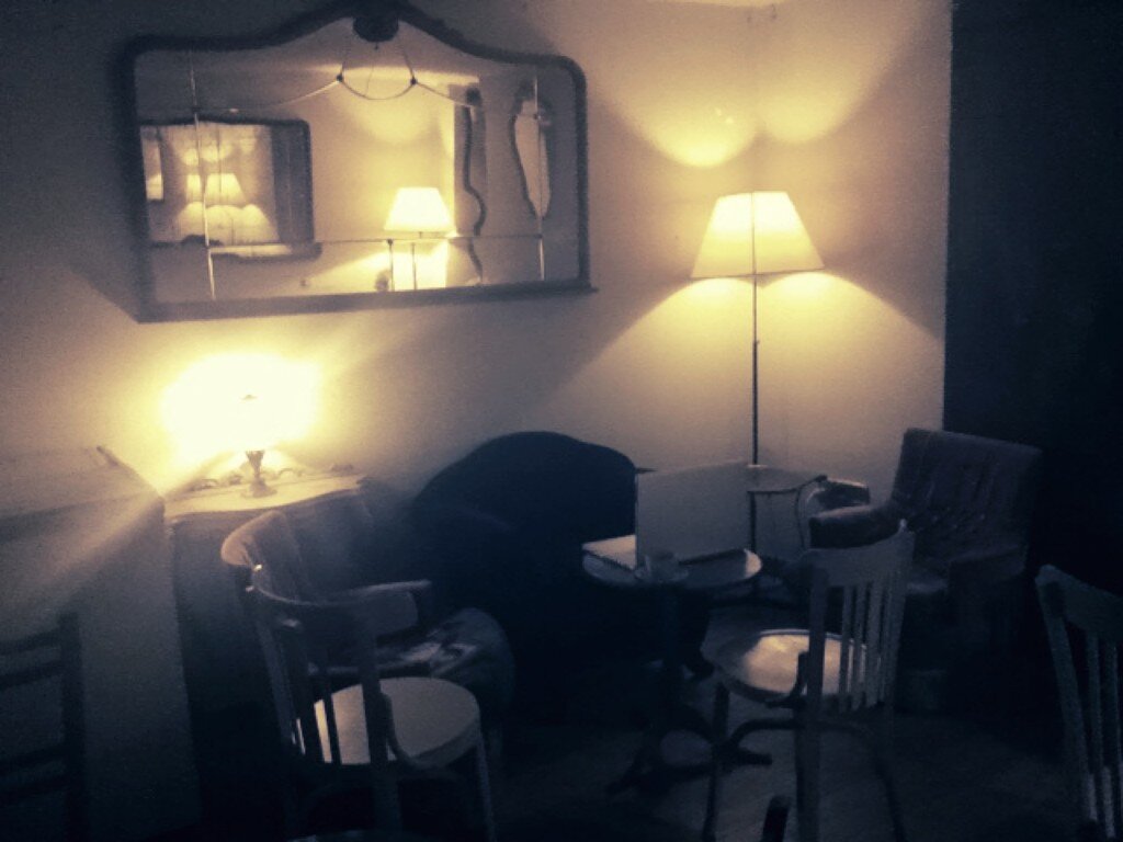 Té rojo, té negro y sofás aterciopelados. Se respira la nostalgia con un cierto aire chic. Entre espejos y vinilos yace una vieja máquina de escribir que irónicamente marcará el comienzo de un nuevo proyecto.